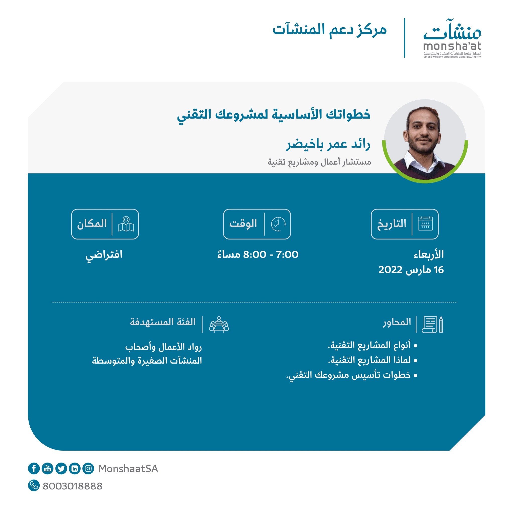 اذا كانت لديك فكرة مشروع ناشئ تقني او لديك رغب ببناء منتج رقمي برمجي يحتاج لدراسة أو بدأت مشروع تقني وتوقف المشروع في أحد المراحل