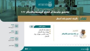 ملتقى جامعة أم القرى للمهنة والابتكار ٢٠٢٣ … ” كيف تصبح رائد أعمال ؟ “